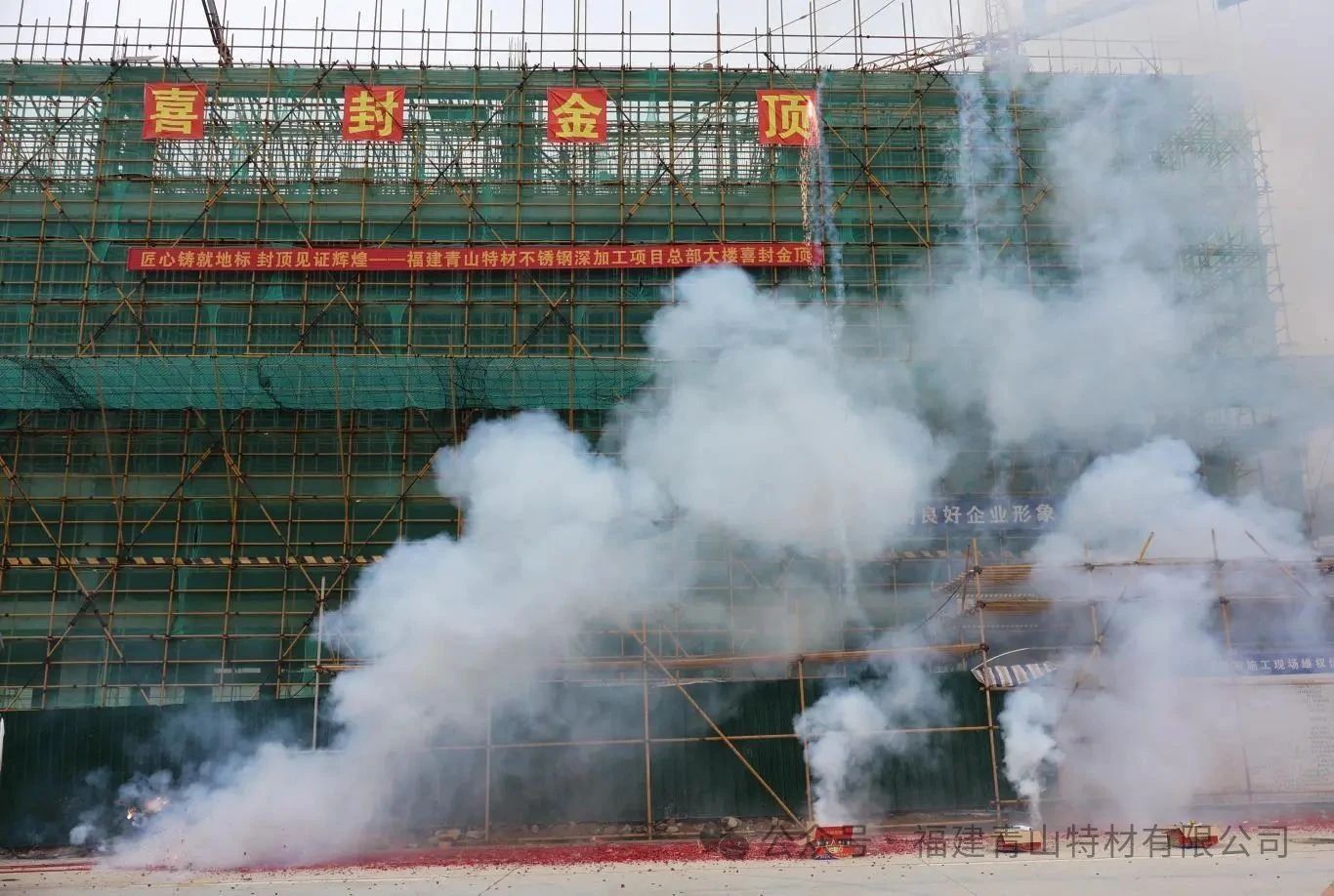 6月11日上午7時39分,隨著最后一方混凝土澆筑到位,福建青山特材不銹鋼深加工項目總部大樓順利完成主體結(jié)構(gòu)封頂,標志著項目建設(shè)取得階段性重大勝利。福建青山特材有限公司副總經(jīng)理鄭浩、無縫管事業(yè)部總經(jīng)理陳光森、青山鋼管有限公司福建分公司總經(jīng)理蔡勇強等一行領(lǐng)導(dǎo)親臨現(xiàn)場,共同揮鏟完成最后澆筑。