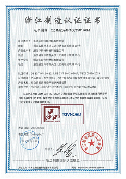 浙江華田不銹鋼制造有限公司